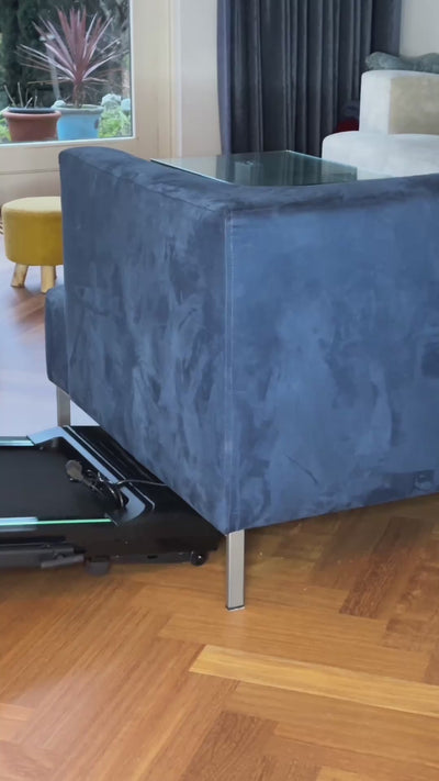 De loopband is compact en makkelijk op te bergen onder een bed of bank dankzij het slimme ontwerp.